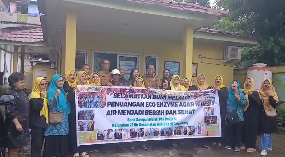 Sumsel.Goutara.com, Palembang – Upaya menjaga kelestarian lingkungan terus dilakukan oleh Kelurahan 23 Ilir Kecamatan Bukit Kecil Palembang melalui kegiatan penuangan Eco Enzyme bersama Bank Sampah Melati PKK Pokja 3. Kegiatan ini menjadi bentuk nyata kepedulian masyarakat terhadap lingkungan dengan cara sederhana namun berdampak besar: menjadikan air lebih bersih dan sehat.