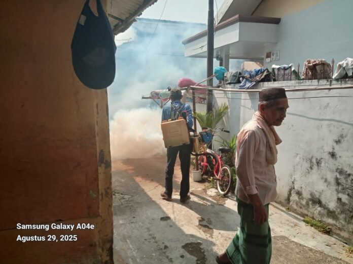 Dalam kesempatan ini, Lurah 26 Ilir juga menindaklanjuti laporan adanya warga yang terjangkit Demam Berdarah Dengue (DBD) di wilayah RT.09 RW.03. Sebagai langkah pencegahan, dilakukan fogging bersama pihak terkait guna memutus rantai penyebaran nyamuk Aedes aegypti.