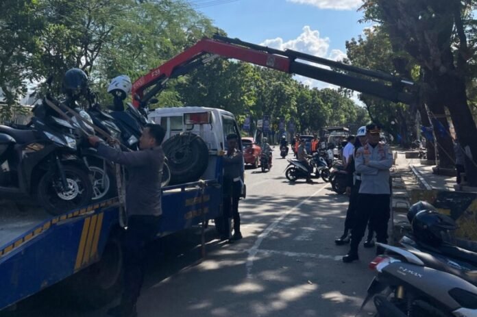 Sumsel.Goutara.com, Palembang – Dinas Perhubungan Kota Palembang kembali melakukan penindakan terhadap kendaraan yang parkir sembarangan di kawasan Jalan POM IX, tepat di depan Rumah Sakit Siloam, Senin (21/07). Operasi ini dipimpin langsung oleh Kabid Wasdalops Dishub Kota Palembang, Ak Julyanzah SP.,M.Si, dan berhasil mengamankan 16 sepeda motor serta menertibkan 3 unit mobil yang melanggar.