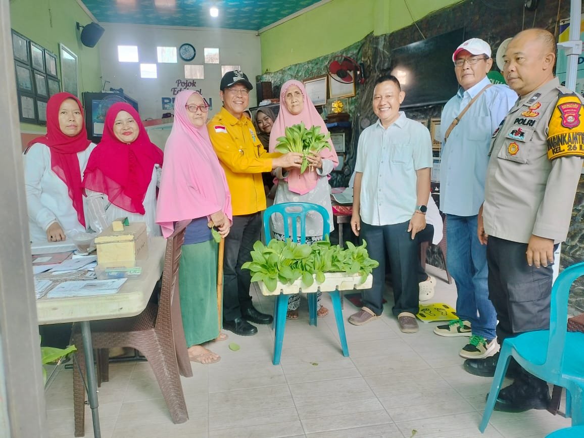 Selain pemeriksaan rutin, kegiatan ini juga menjadi ajang edukasi tentang pentingnya gizi seimbang, khususnya konsumsi sayur mayur sebagai sumber vitamin dan serat. Suasana penuh kebersamaan terlihat ketika para ibu tersenyum menerima paket sayur, tanda kepedulian dan gotong royong masih hidup di tengah masyarakat.