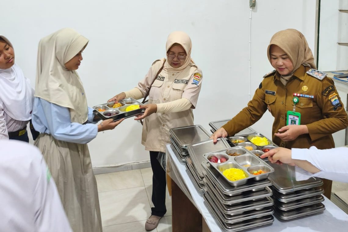 Kehadiran lurah di tengah siswa dan guru menambah motivasi tersendiri. Para siswa tampak antusias menerima makanan bergizi yang dibagikan, mulai dari buah segar, susu, hingga menu sehat yang disiapkan dengan standar kebersihan.