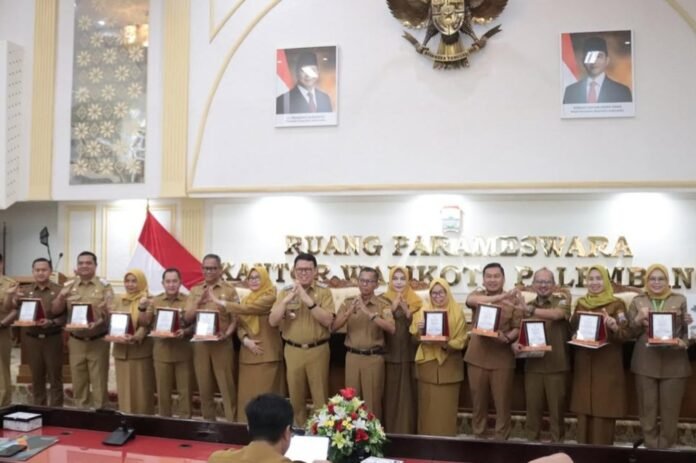 Sumsel.Goutara.com, Palembang – Plt. Camat Kertapati Rifandi Putra, S.STP., M.Si, didampingi Plt. Kasubag Umum & Kepegawaian Kamarudin, S.IP, menghadiri kegiatan Penyerahan Laporan dan Piagam Penghargaan Pengawasan Kearsipan Internal pada Perangkat Daerah di lingkungan Pemerintah Kota Palembang Tahun 2025. Acara berlangsung di Ruang Rapat Parameswara Setda Kota Palembang, Selasa (30/9/2025).