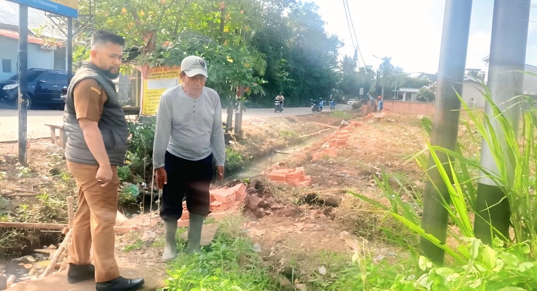 Sumsel.Goutara.com, Palembang – Lurah Karyabaru, Afran Kurniawan, S.H., bersama Staf Trantib Kelurahan Karyabaru, melakukan peninjauan langsung terhadap bangunan pagar yang berdiri di atas bibir parit di Jalan Sultan Hasanudin, RT 38 RW 11, Kelurahan Karyabaru, Kecamatan Alang-Alang Lebar, pada Senin, 7 Juli 2025.