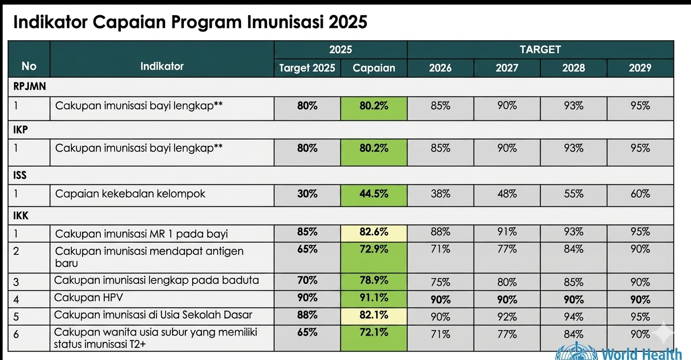 Memasuki 2026, pemerintah menaikkan target nasional sebagai bentuk percepatan perlindungan anak. Target cakupan imunisasi bayi lengkap ditingkatkan menjadi 85 persen, sementara cakupan imunisasi usia sekolah ditargetkan mencapai 90 persen.