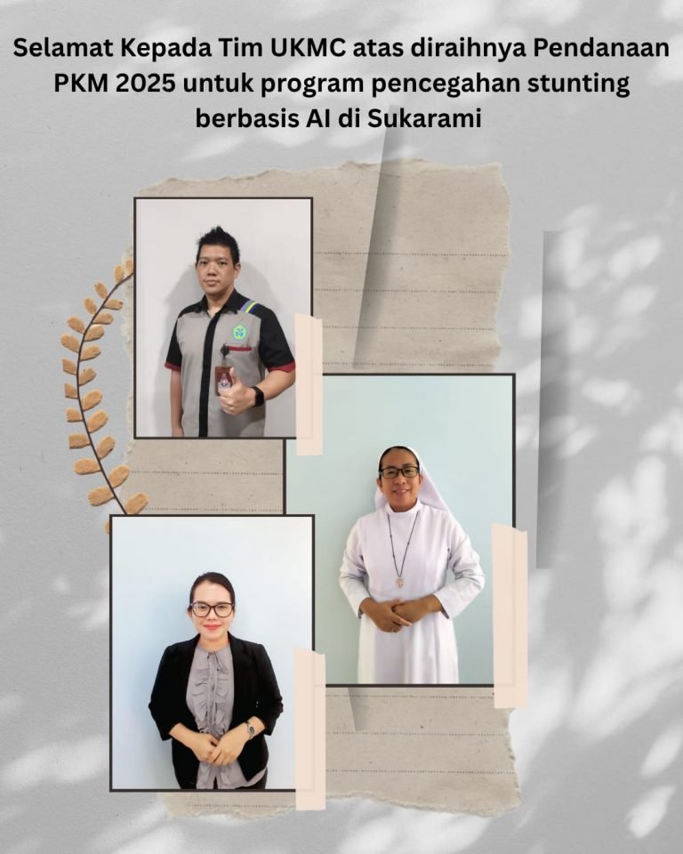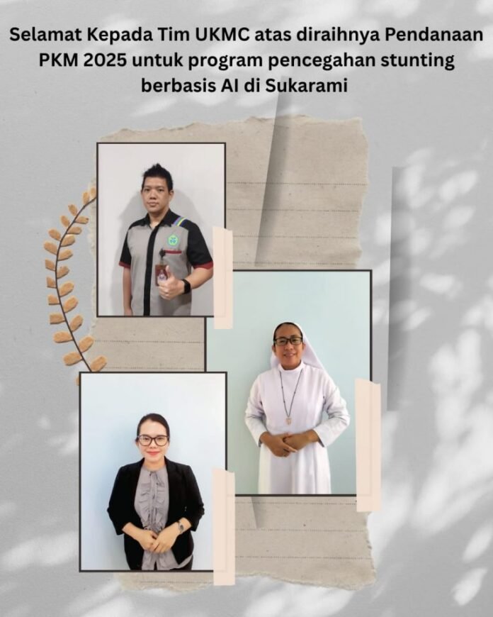 Prestasi ini diraih oleh tim dosen UKMC yang terdiri dari Theresia Anita, SST., M.Tr.Keb, Andri Wijaya, S.Kom., M.T.I., CTIA, dan Agnes Felicia Lubis, S.Si.T., M.Biomedik. Mereka mengusung tema “Peningkatan Kesadaran Tentang Pencegahan Stunting Melalui Teknologi Artificial Intelligence (AI) pada Kelompok PKK Kecamatan Sukarami”. Program ini memadukan edukasi kesehatan masyarakat dengan pemanfaatan teknologi cerdas guna meningkatkan kesadaran dan tindakan preventif dalam mengatasi masalah stunting.