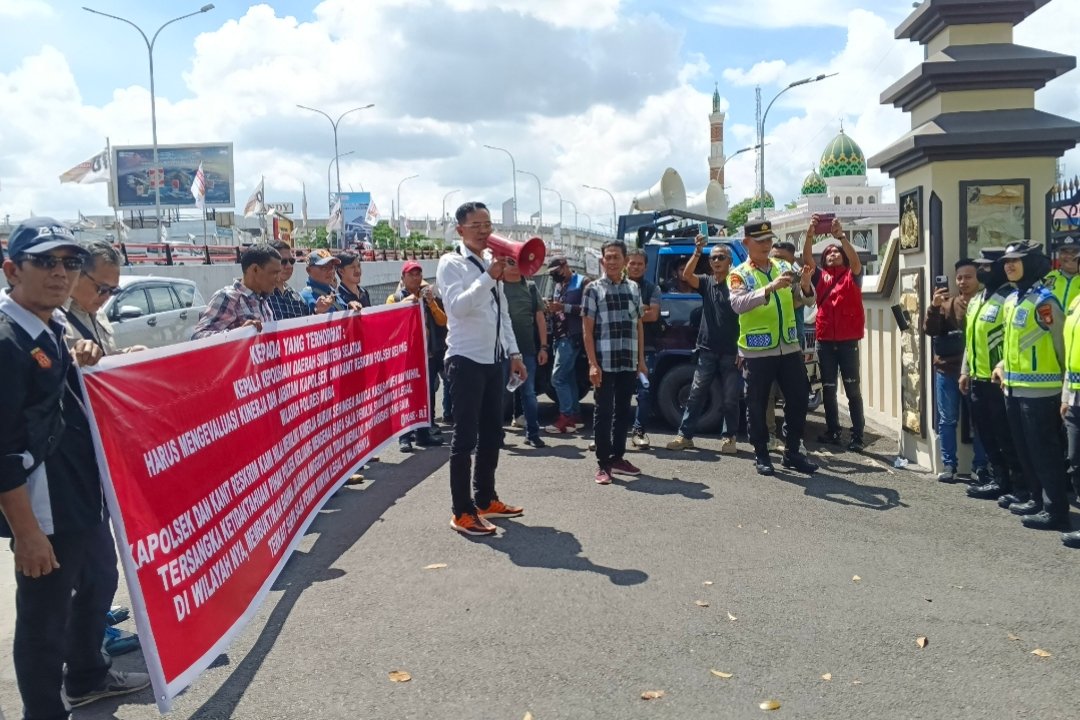 “Sudah ada pengakuan dari pemilik sumur minyak ilegal yang terbakar, namun sampai sekarang tidak ada penetapan tersangka maupun penahanan. Ini menjadi pertanyaan besar terhadap kinerja aparat di lapangan,” tegasnya saat aksi berlangsung.